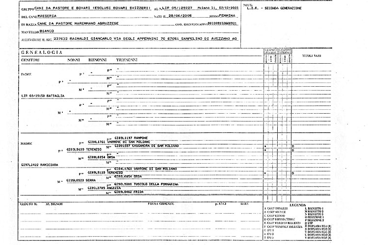 Foto e pedigree del cane Pastore Maremmano Abruzzese Masseria femmina.