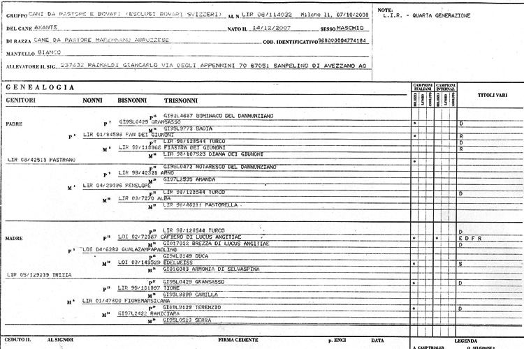 Foto e pedigree del cane Pastore Maremmano Abruzzese Axante.